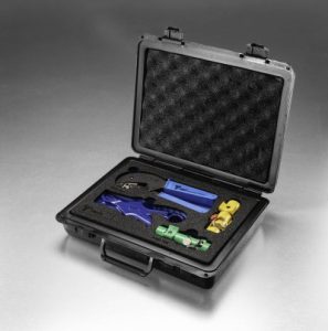 Amphenol Times Microwave Systems LMR®Hardcase Tool Kit: The LMR® Tool Kit contains all of the tools required for a specific job all in one place. This new hard case tool kit with hard foam cut-outs for LMR-195, 200 and 240 goes a long way towards addressing the challenge. This is the first in a series of hardcase kits which will keep all of the tools required for a specific job all in one place. The included tools include the CT-240/200/100 crimp tool, the CST-195/200 prep tool, the CST-240A prep tool, and the CCT-03 cable cutting tool.