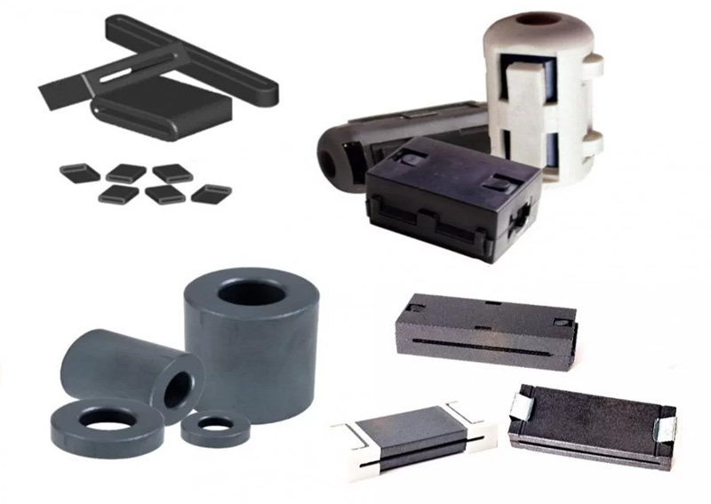Ferrite cores are used to suppress electromagnetic emissions by blocking low-frequency noise and absorbing high-frequency noise. This avoids electromagnetic interference.